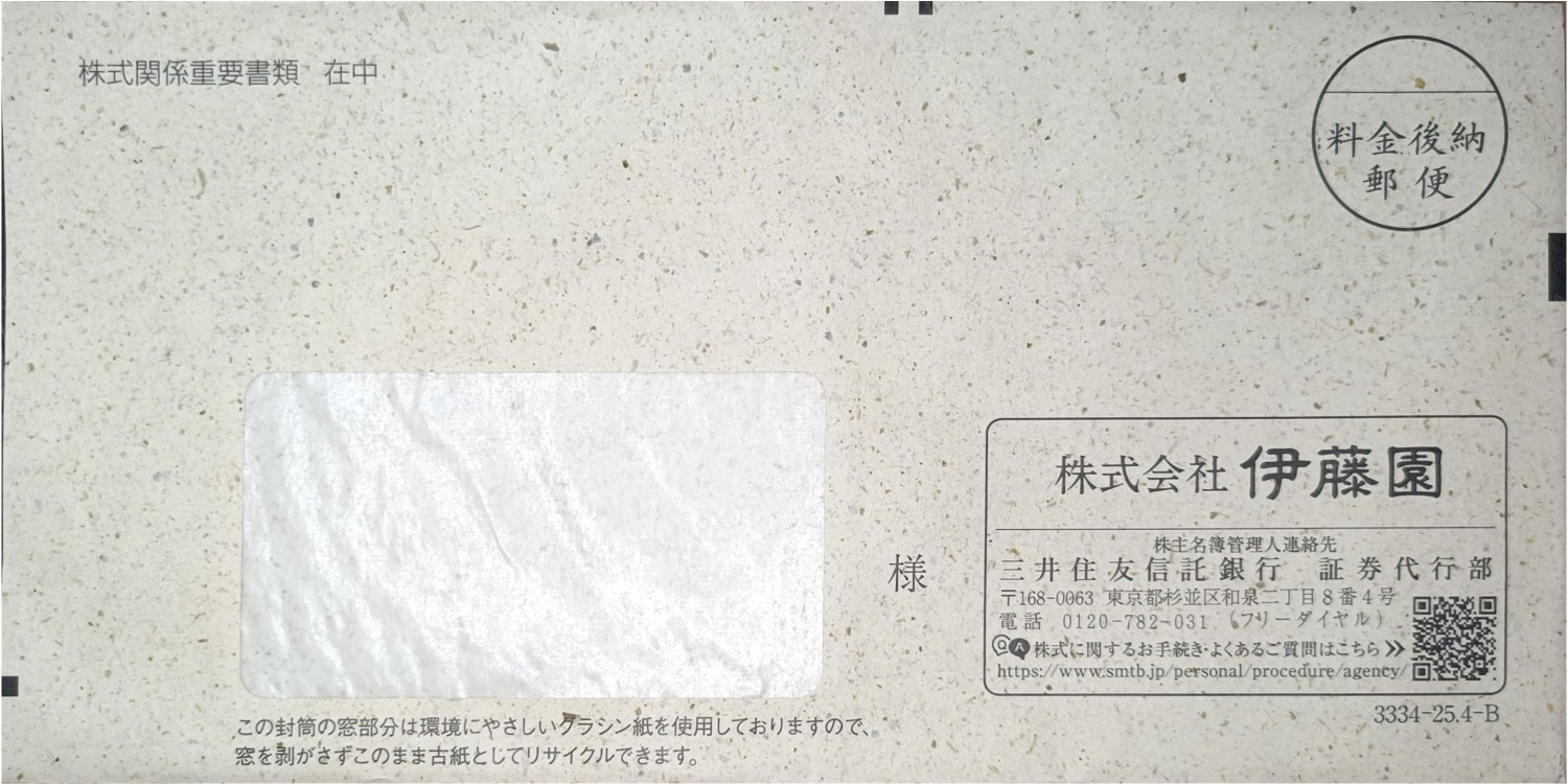 お茶を思わせるような柄の入った少し淡いクリーム色の封筒。手触りが好き。