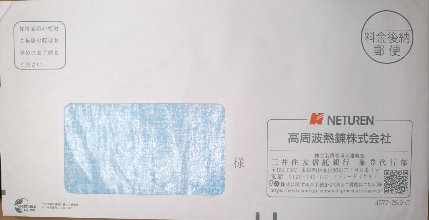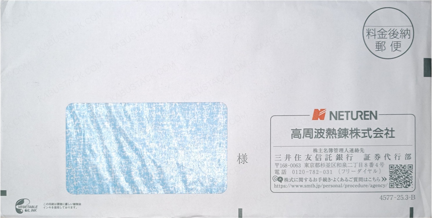 右下の枠線の上にロゴ。赤黒の二色刷り