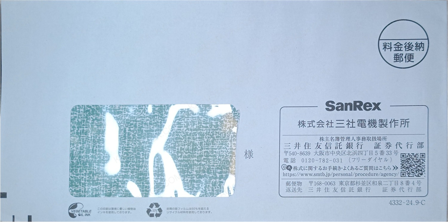 右下、枠線上に会社ロゴ。