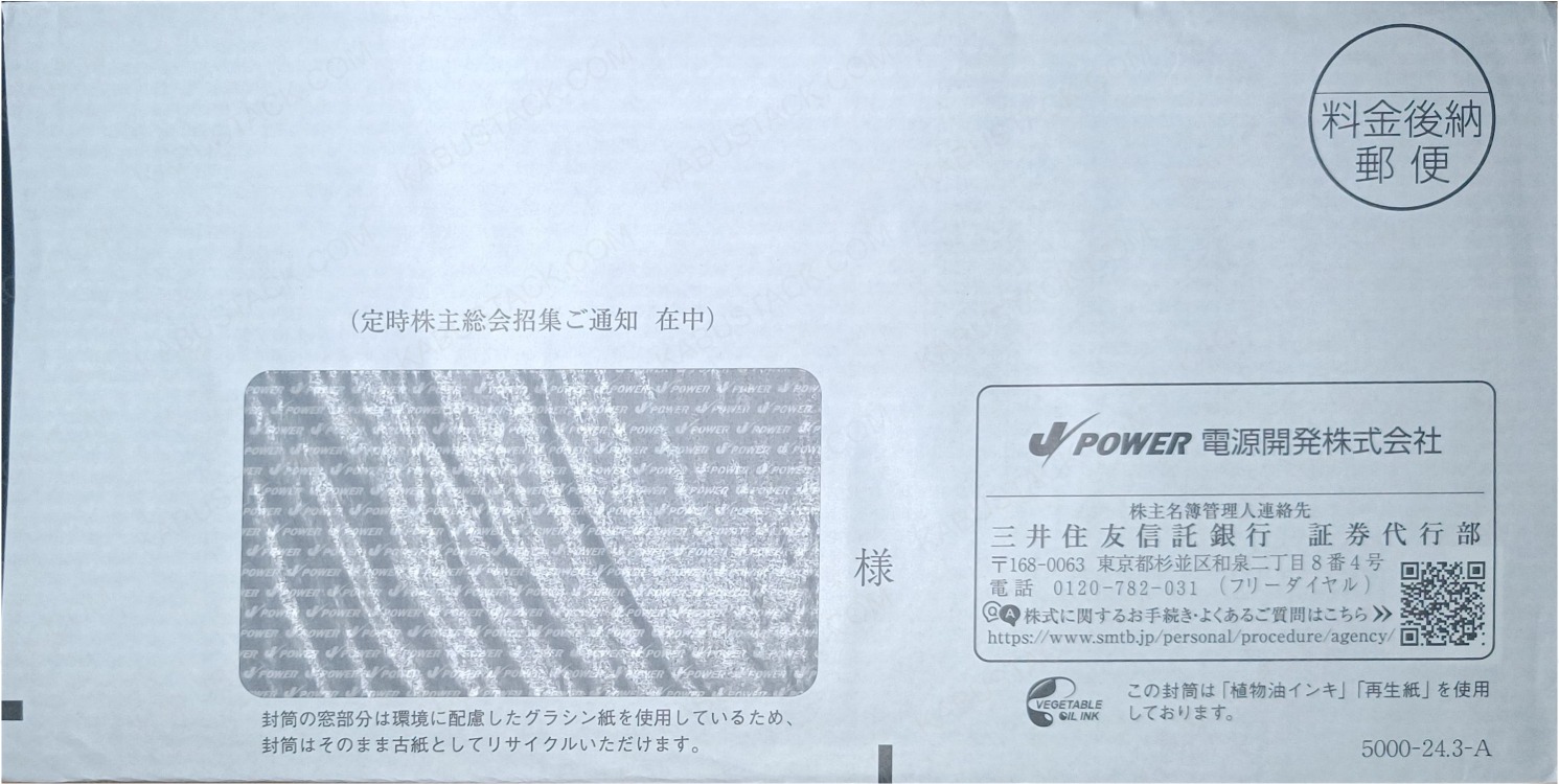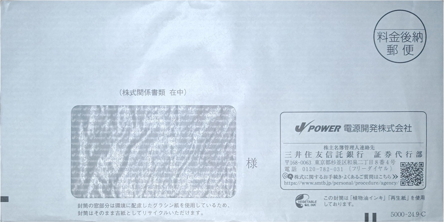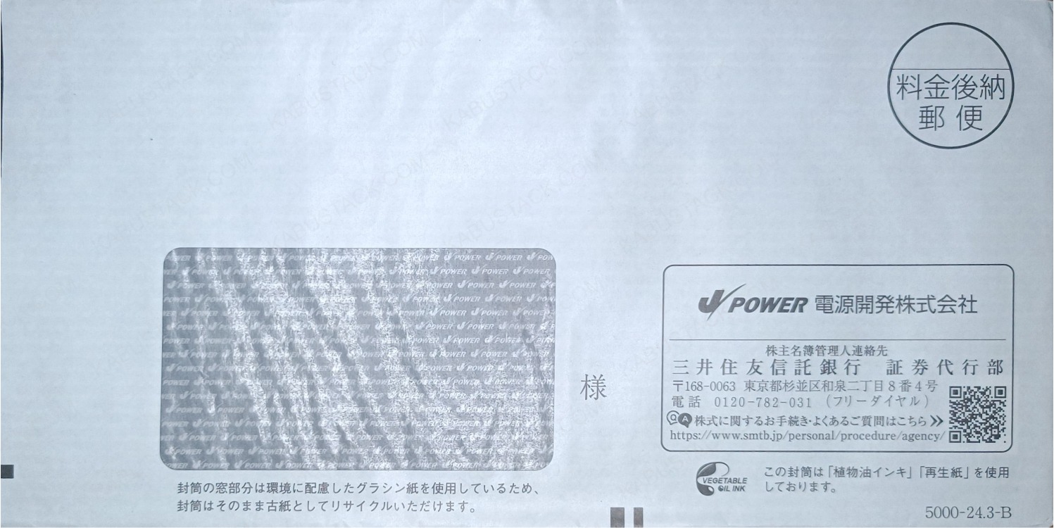 右下に会社のロゴ。封筒の内側に無限会社名。